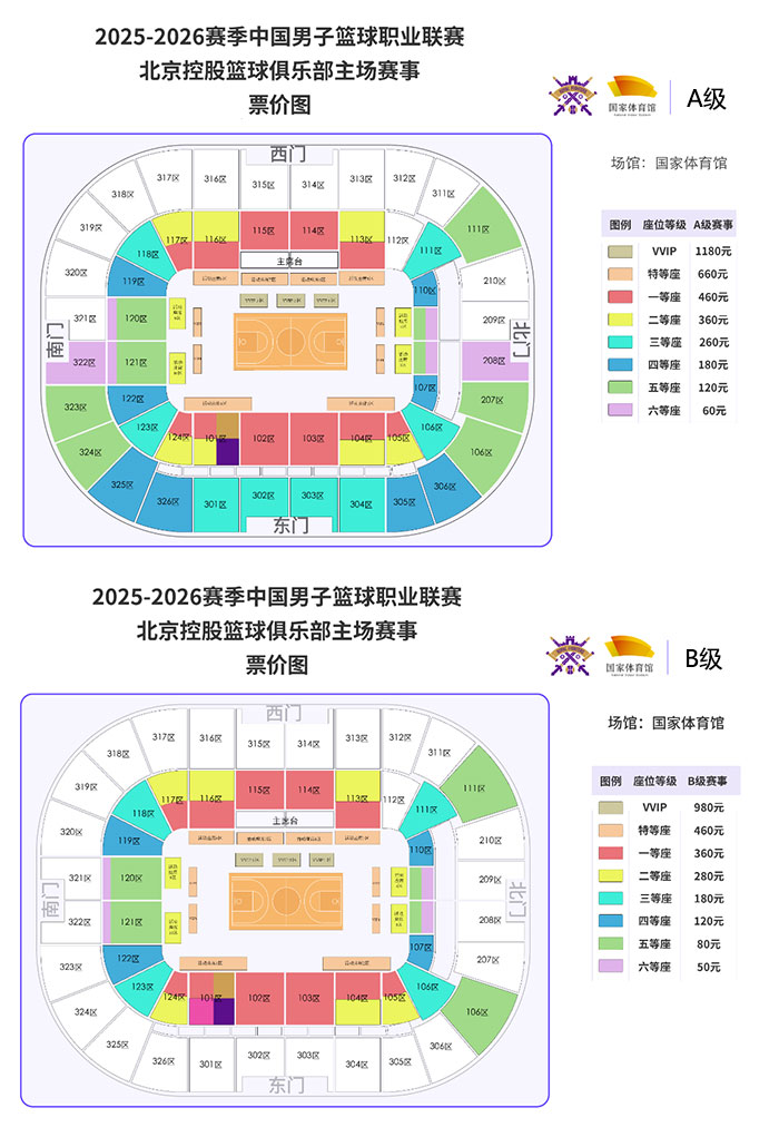 2025-2026赛季CBA北京控股男篮主场座位图: